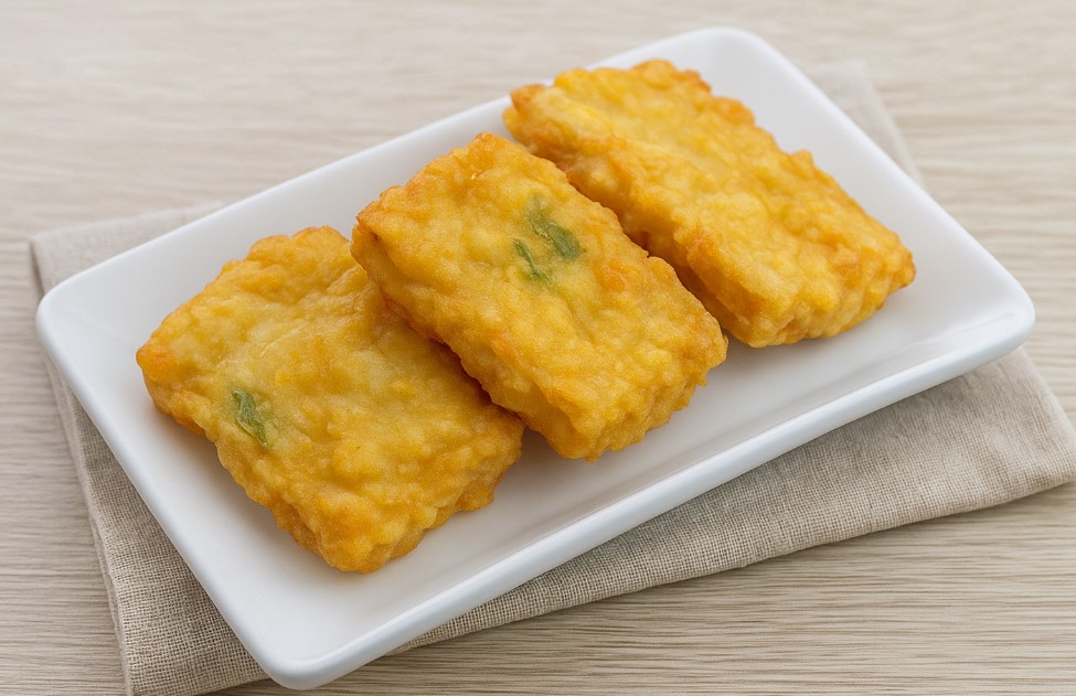 Tempe mengandung protein nabati tinggi yang baik untuk menjaga energi tubuh. Saat digoreng dengan balutan tepung berbumbu, rasanya gurih, renyah, dan cocok dipadukan dengan kuah sayur sop yang segar. Cara membuatnya mudah, cukup iris tempe tipis, lumuri dengan adonan tepung bumbu, lalu goreng hingga kuning keemasan.
